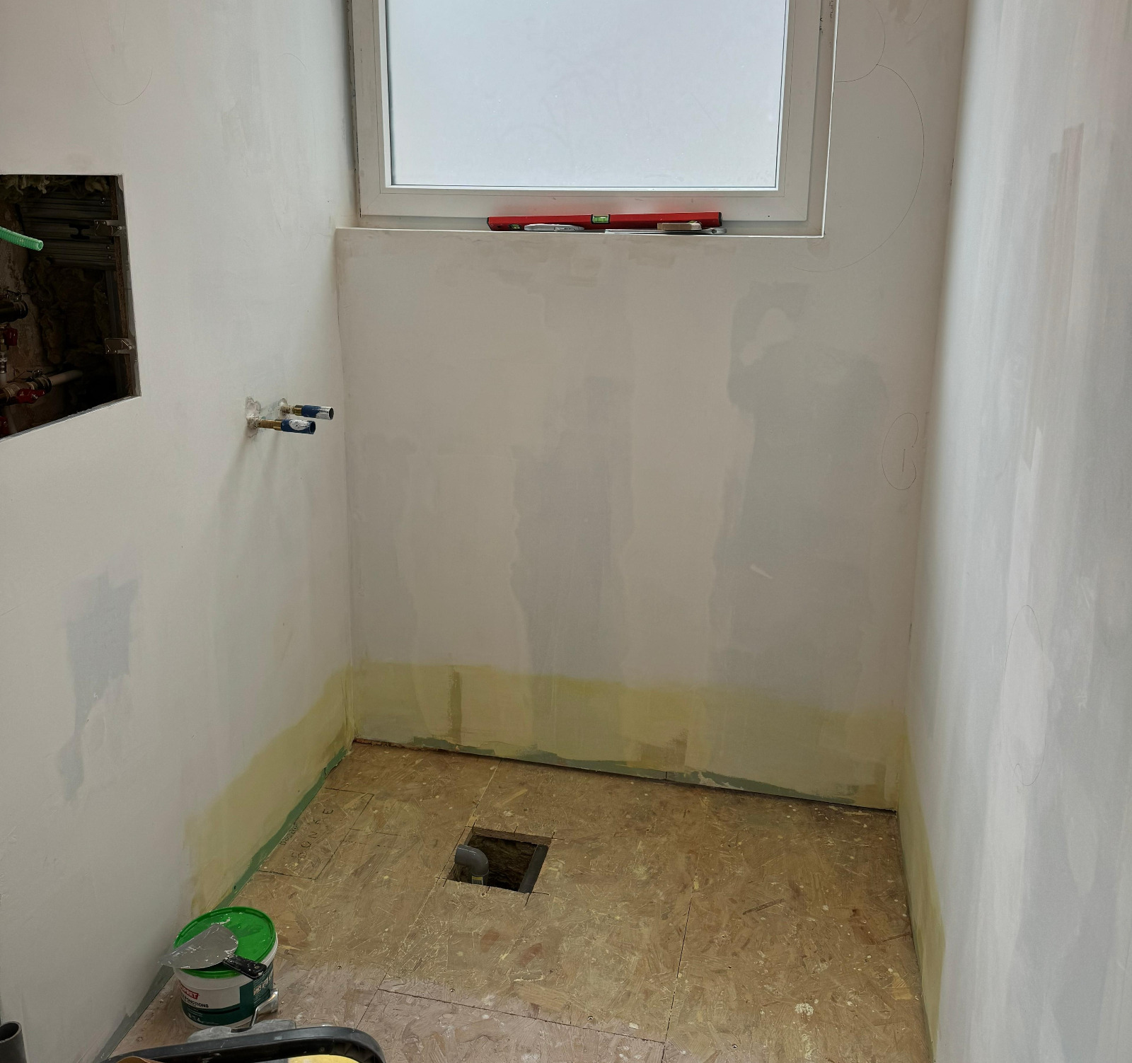 Je vous partage quelques photos de ma réalisation de pose de panneaux WEDI ep. 80 mm sur plancher OSB pour accueillir un receveur de douche qui occupera toute la largeur de la pièce.