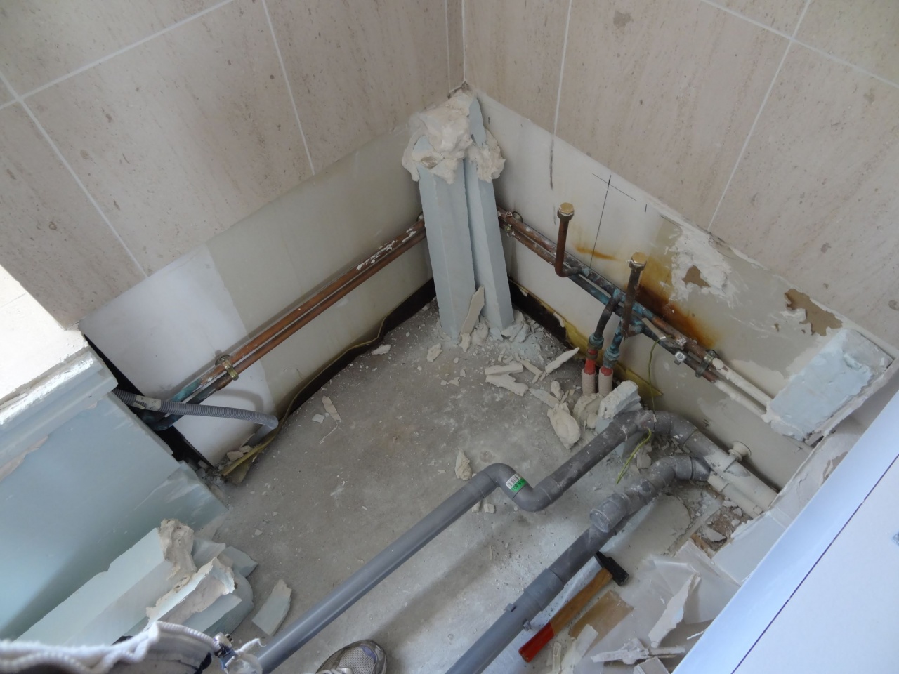 Nous commençons la transformation d'une salle de bain en salle de douche. Nos principales questions concernent